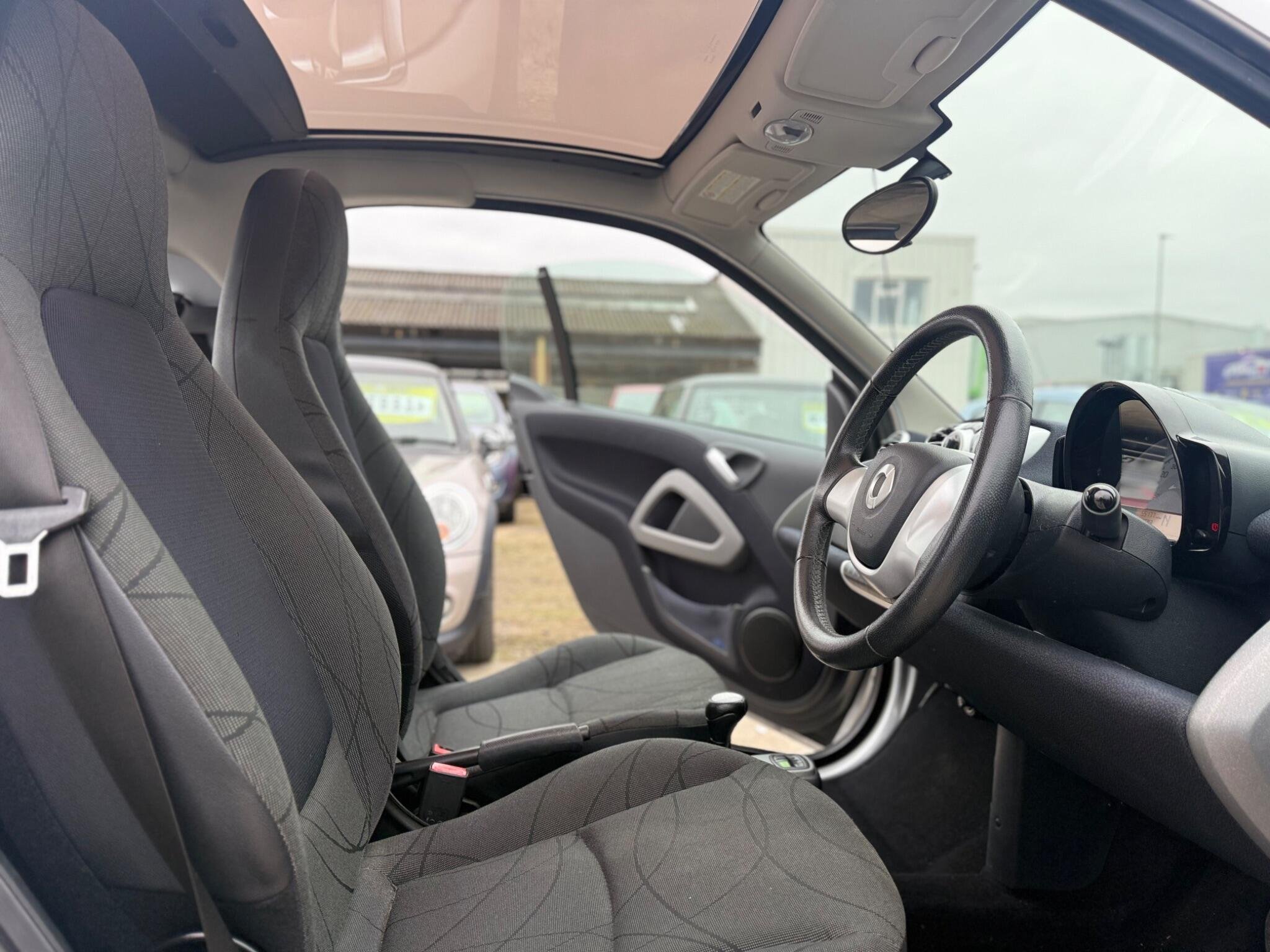 This 2013 Smart Fortwo MHD Passion boasts a clear vehicle history, offering peace of mind for its next owner. Powered by a 1.0 litre petrol engine, this Passion trim model is equipped with desirable features including air conditioning with automatic temperature control, a Bluetooth hands free system for seamless connectivity, and an opening panoramic roof that floods the cabin with light.